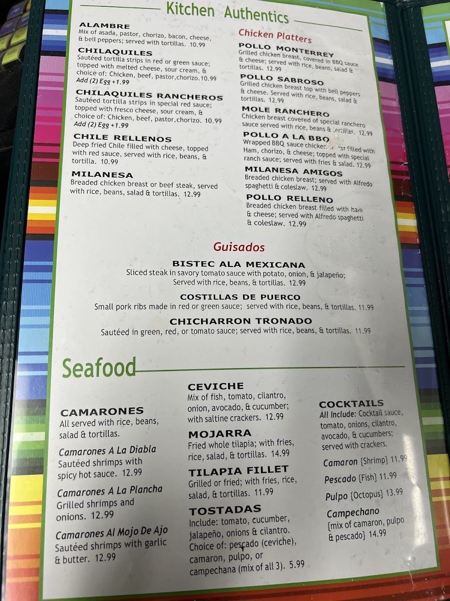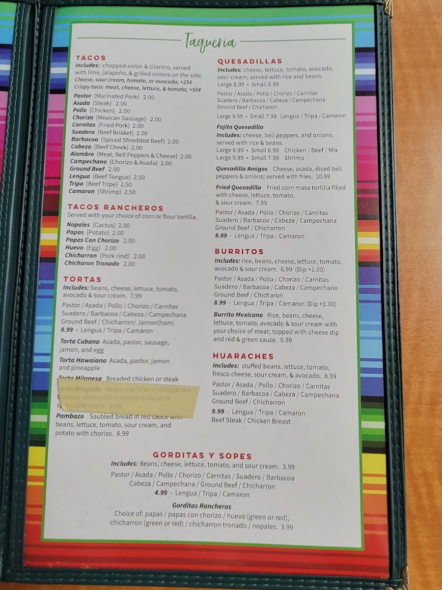 Breakfast items such as chilaquiles and sausage patty with hash browns and eggs create a warm, comforting start to the day, while classic beverages like margaritas and horchata offer balance and refreshment whether you’re settling in for a late lunch or relaxed dinner. The menu blends authentic Mexican flavors with accessible portions, making it a welcoming choice whether you’re seeking a quick lunch or a more leisurely meal.